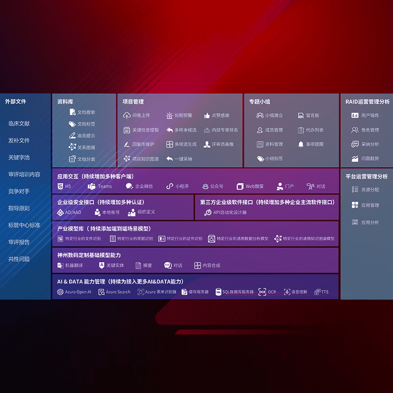 医疗器械产品上市前,,,,要熟悉严格与繁复评审标准,,,整理分析监管机构指导文件中的海量信息。。。企业急需一个智能化解决方案,,,提升知识管理效率,,提高评审通过率,,,以提升其市场竞争力。。。